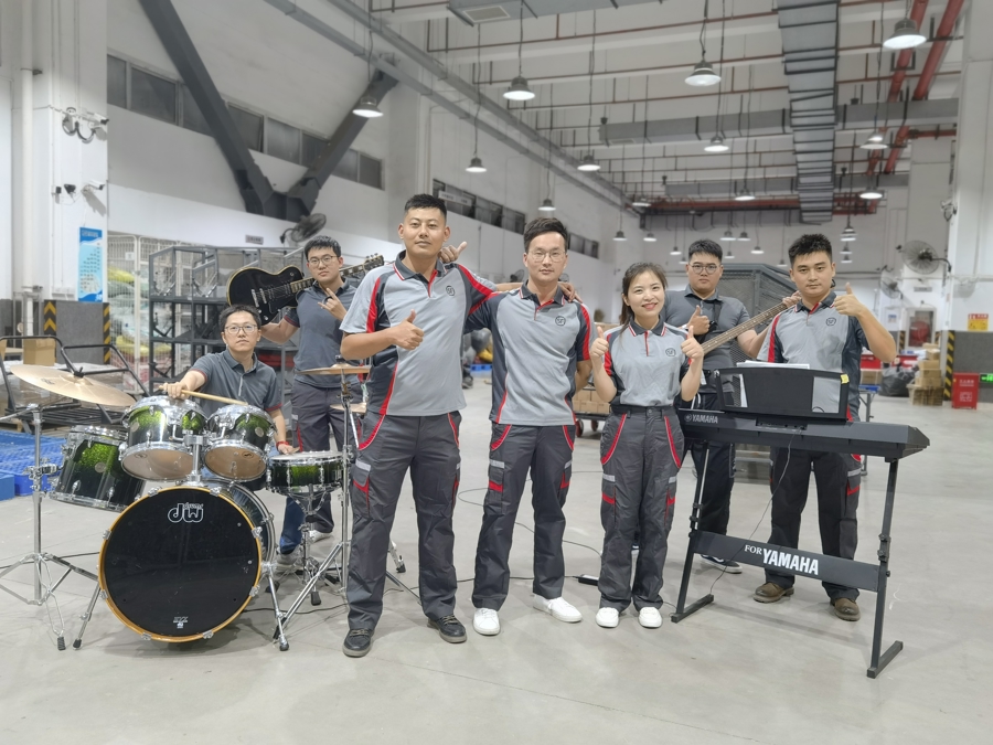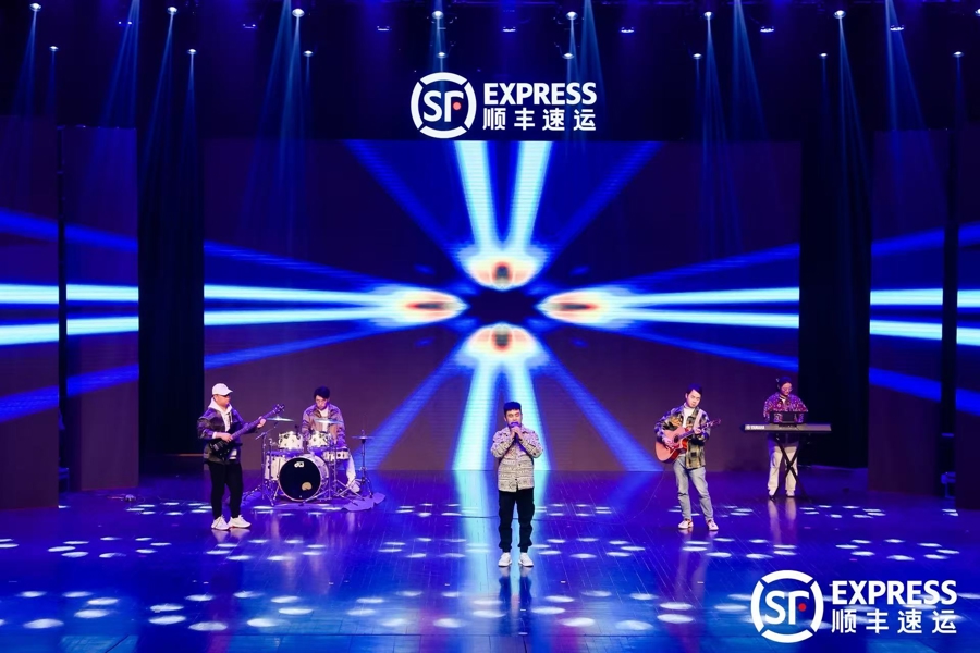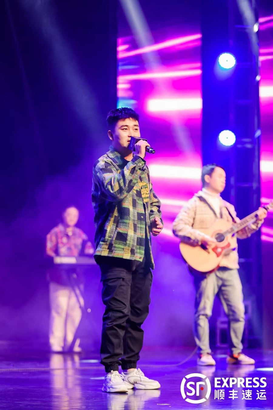如今,秦飞飞不仅自己唱,还带动了网点几十号同事一起唱。起初,大家都腼腆得很,有人想唱却不敢开口,有人站在一旁只敢当听众。秦飞飞就主动拉着大家,从一句一句教起,慢慢地,网点里的歌声越来越多。后来,他干脆牵头组了个乐队,有同事弹吉他,有同事玩贝斯,大家利用下班时间排练,没有专业的设备,就用手机放伴奏;没有宽敞的排练室,就在网点的仓库角落凑合一下。