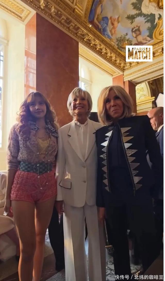 Lisa在秀场上见到了LVceo夫人,也就是她男友Fred的妈妈。Fred妈妈穿一身白色西装套装,金色短发的她看着漂亮又干练。站在她身边的是法国第一夫人布丽吉特,两人的关系看着很好。